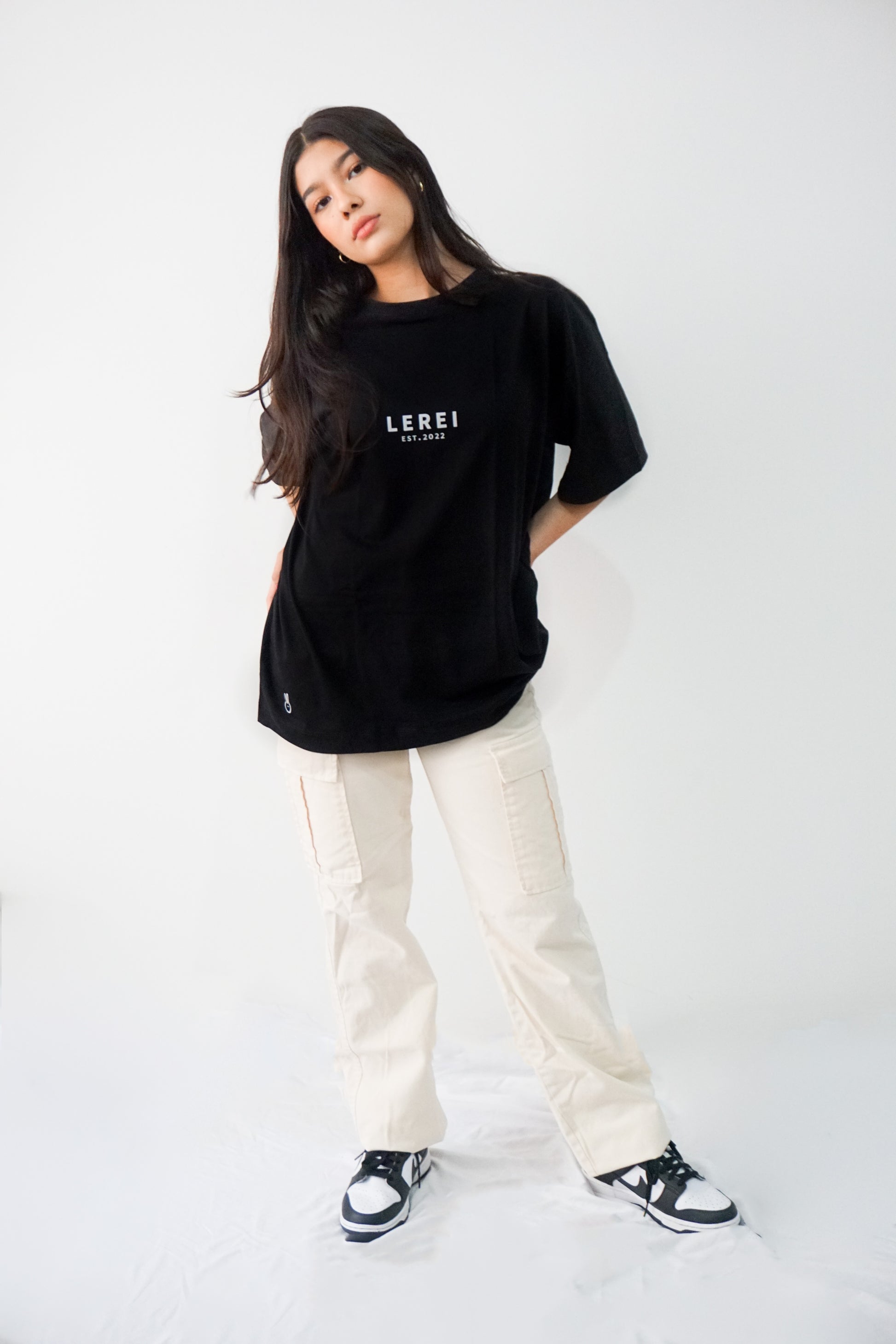 Camiseta oversized en punto suave de algodón con cuello redondo, hombros caídos. Bajo de corte recto con aberturas laterales y espalda algo más larga.